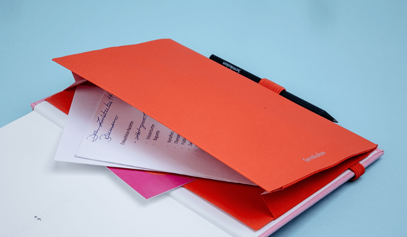 A 3 in 1 self-adhesive Notebook pocket that comes with an elastic closure and a pen holder. Available in 12 colours.